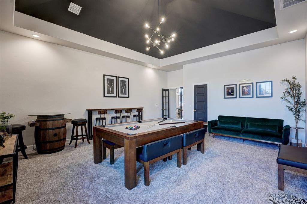 Featuring 4 spacious bedrooms, 3 full bathrooms, and a powder bath. A dedicated office showcases custom wallpaper on the ceiling, adding a touch of personality to your workspace. The large bonus room, complete with a built-in kitchenette, exterior door, and patio, is perfect for hosting or everyday use. An adjacent theater/gaming room provides more options for fun.